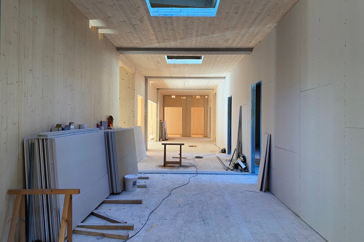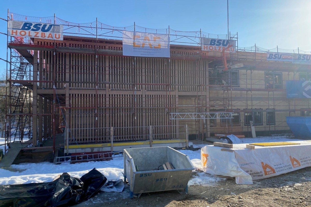 - Der Kindergarten wird im Holzmassivbauweise errichtet
